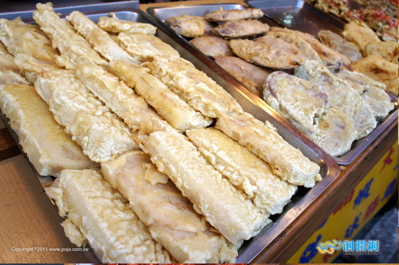 您當前的位置:首頁 > 花蓮美食 > 花蓮小吃夜市 花蓮美食----鯉魚潭蝦餅、地瓜餅 時間:2011-12-06 14:09:26 來源:洄瀾網 作者:Jeff 瀏覽人數: 字級 S M L 鯉魚潭出名的就是《蝦餅、地瓜餅》和活跳蝦,每次到這裡總是要來吃一下黃澄澄的炸鹹酥蝦這就是蝦餅囉,除了表面有整隻的蝦之外,裡面是麵粉和蔥花炸出來的這是地瓜餅,要沾胡椒鹽比較好吃這裡的木瓜牛奶也是每次來必點的之一,到鯉魚潭除了欣賞美麗的風景和划船外,一定要來嚐嚐蝦餅和木瓜牛奶喔!