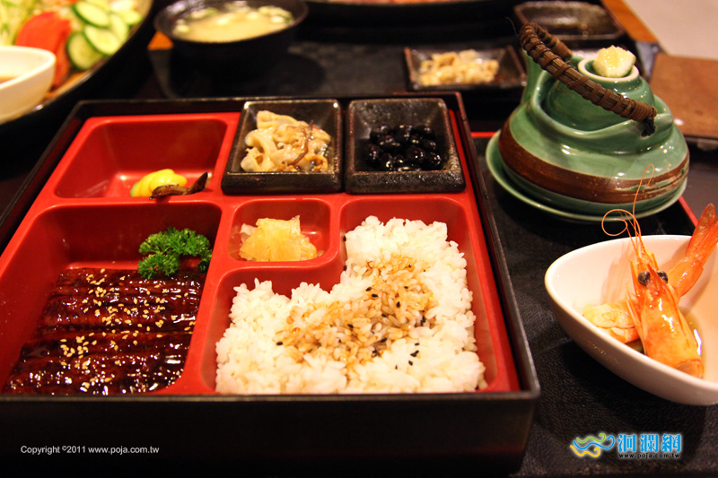 沙拉上的魚蛋和海鮮 生魚片非常新鮮好吃 蒲燒鰻魚飯,鰻魚一大片之外,還有脆腸、黑豆、蝦,除了新鮮還有美味 現在的場地,還有庭院,增加不少用餐氛圍 營業時間電話:03-8358282、03-8327688