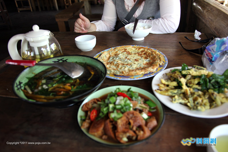 您當前的位置:首頁 > 花蓮美食 > 花蓮特色餐館 赤科山---加蜜園 時間:2011-03-04 15:44:02 來源:洄瀾網 作者:Jeff 瀏覽人數: 字級 S M L 繼昨天赤科山賞櫻後,今天繼續跟大家分享,當天的加密園午餐,中午賞完花拍完照,在加密園跟老闆娘一邊吃飯一邊聊天,陽光穿過窗戶照進餐廳,外面有午後的蛙鳴,加上喇叭傳來陳建年的歌,一整個舒服的下午時光.....整個用餐環境非常有特色酥炸金針,沾胡椒鹽,蠻爽口的香椿煎蛋,不會很鹹剛剛好野蔡金針姑湯,營養價值非常高三菜一湯,稱不上豐盛,但很有特色,也吃得飽香茅+甜菊泡的茶算是吃了一個很有特色的午餐,用餐環境讚,推薦
