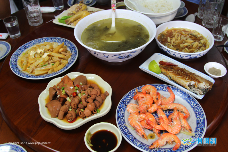 您當前的位置:首頁 > 花蓮美食 > 花蓮特色餐館 花蓮美食----萬榮珍妹鄉村美食(紅麴豬腳) 時間:2011-10-01 11:54:46 來源:洄瀾網 作者:Jeff 瀏覽人數: 字級 S M L 萬榮珍妹鄉村美食(紅麴豬腳),位於萬榮舊路和新外環道之間,新開幕的特色餐廳,讓我們到萬榮吃豬腳的時候,除了原有知名度的豬腳店之外,也另外有了新的選擇。紅麴豬腳,不知是肚子餓的關係嗎?吃起來特別香Q好吃香腸也是紅麴做的,不會太鹹,蠻可口的打結的腸子很厚實,咬起來很有嚼勁蝦子很新鮮,脫殼很順,帶點甘甜味整體來說,一桌看起來的家常菜,吃起來卻是津津有味,適合全家或三五好友小聚的餐館。