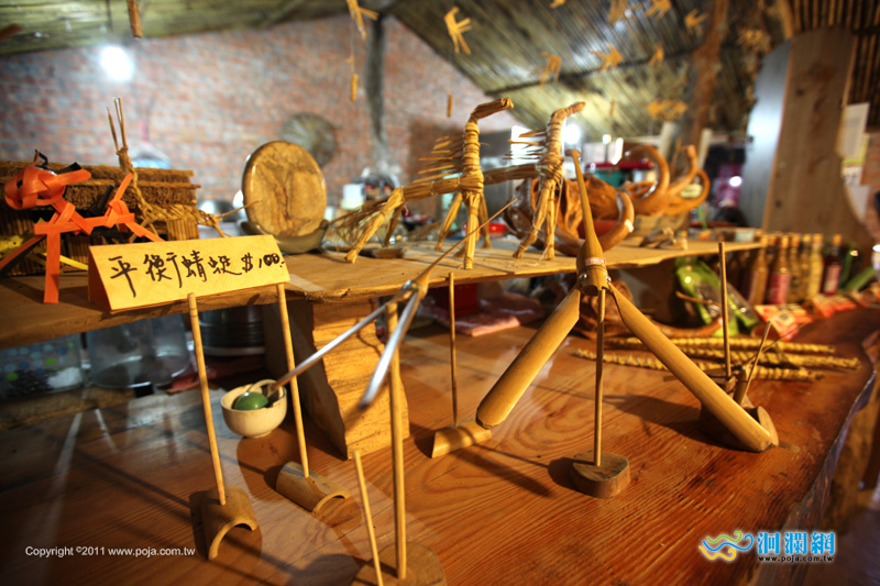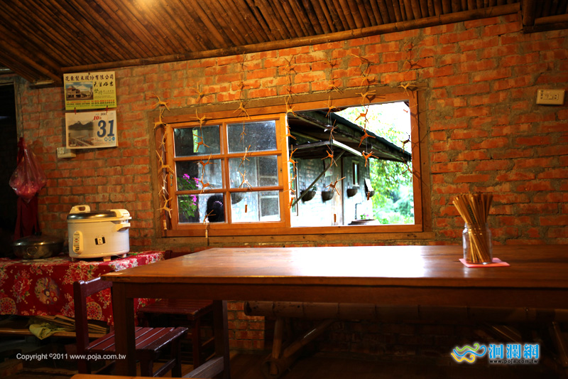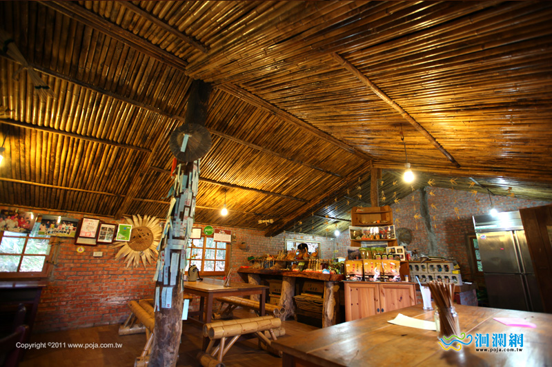 竹編的屋頂加上紅磚牆很有復古特色,桌椅也都是竹製或木頭的喔