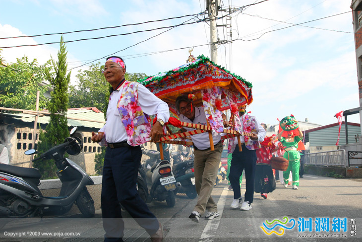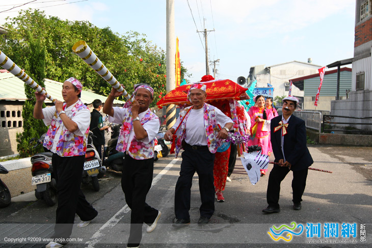 與方式熱鬧展開囉!鄉長田智宣在大家以花轎迎親方式共同步行到五穀宮,並在敲響鑼聲後正式熱鬧展開,