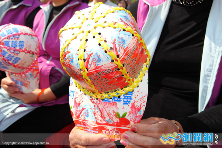 現場也發現一群熱愛環保的媽媽們,自行用回收的飲料盒製作舒適方便環保的鴨舌帽。