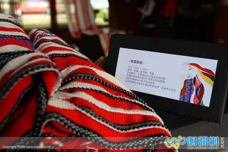 林靖芸嘗試使用現代的織布技巧,轉化阿美族衣飾上的線條、形式,著重阿美族喜愛善用的顏色,