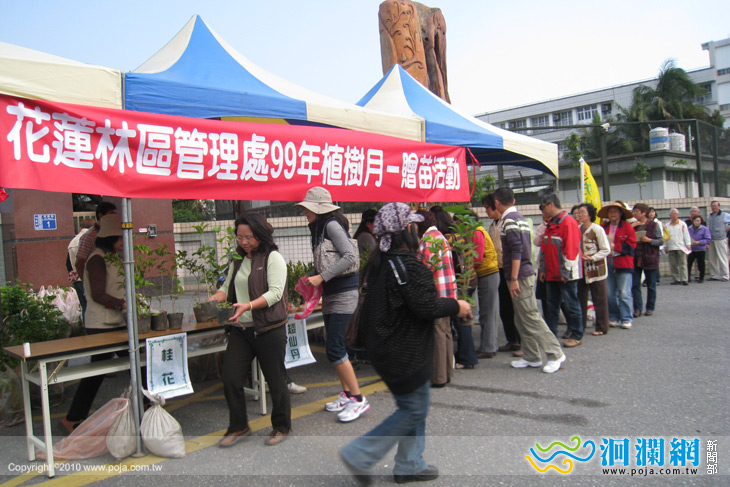 花蓮林區管理處於3月12日植樹節當日舉辦贈送苗木活動,已行有多年,領苗之民眾非常擁躍,