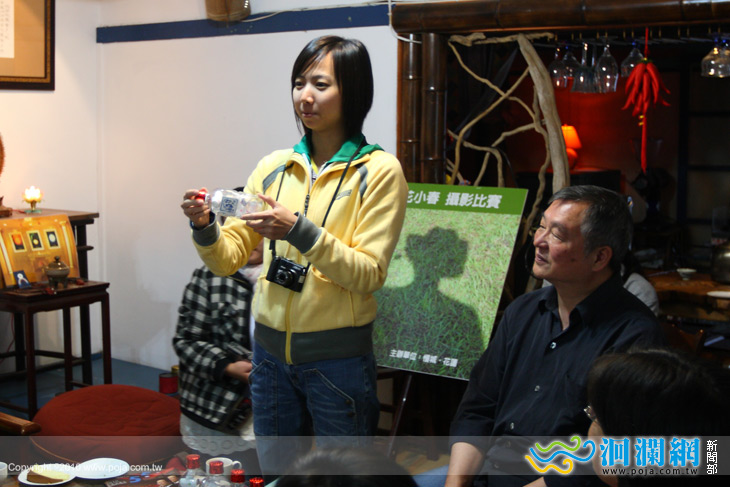 得獎者在頒獎典禮現場解說拍照的心得。獲選的作品可以獲得由慢城店家所準備的各式精美禮品。