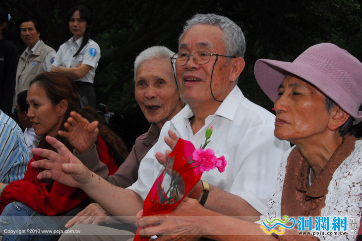 中橫築路人參加,由於適逢母親節前夕,太管處也準備康乃馨送給在場民眾,