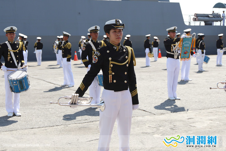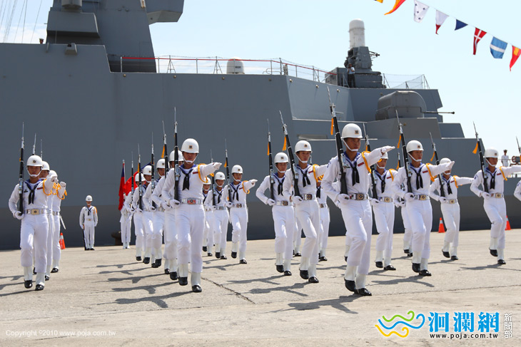 海軍遠航訓練支隊以整齊俐落及壯盛軍容,將平日紮實訓練成果,