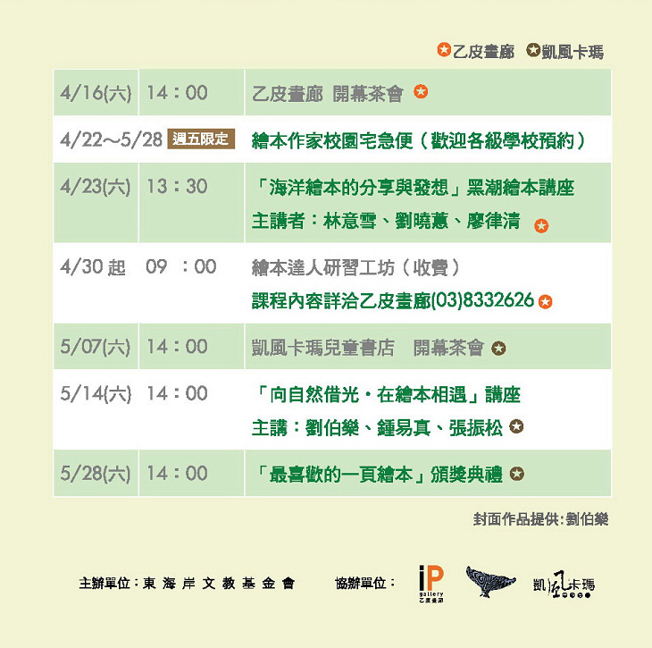 協辦單位:乙皮畫廊、凱風卡瑪兒童書店、財團法人黑潮海洋文教基金會