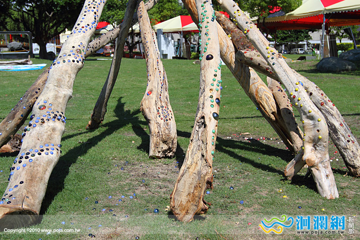 今年在文化局園區也可見到各色彩色玻璃珠、漂流木鑲嵌等大型裝置藝術展,相當吸引人,