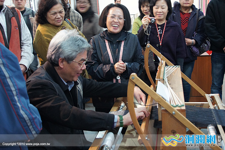 市長田智宣還在老師的指導下,嘗試操作織布機,對於每件作品背後所付出的心血有更深的體會,這次展覽為