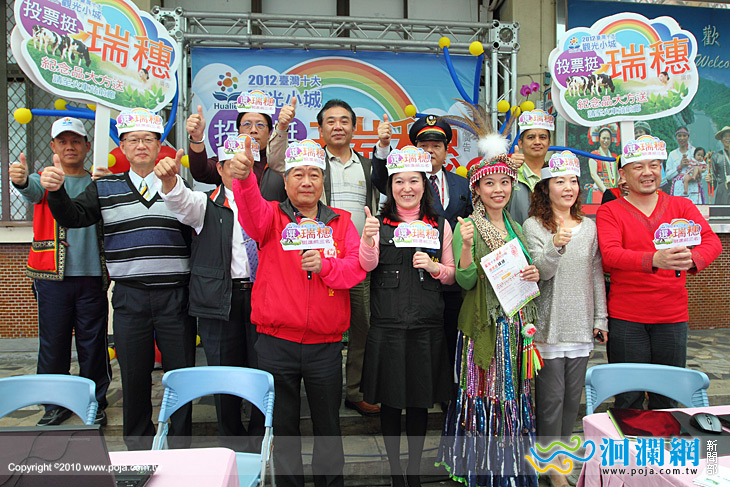 為搶救瑞穗挺進台灣十大觀光小城,花蓮縣產官界集聚花蓮火車站的催票造勢活動中,包括花東縱谷國家風景區管