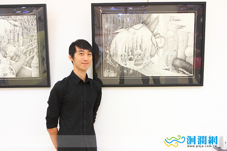 張百舜 使用代針筆精細描繪出自己心中的奇幻世界,表現出明暗細節以及精細的筆觸,繪出的奇幻世界令人讚嘆。