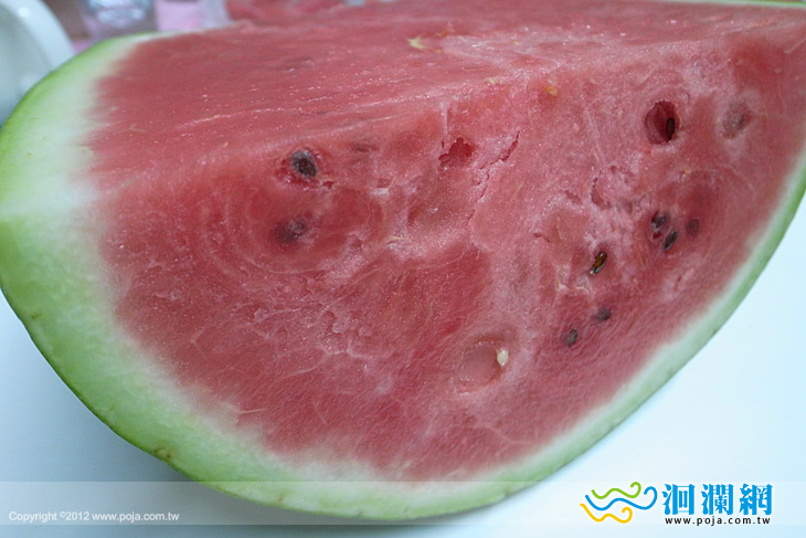 肉鮮紅,肉質細膩爽口,糖度可達13~14度,不易空心。