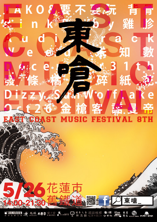 五月26日,星期六,下午2點至晚上9點30分,於花蓮市舊鐵道商圈舉行第八屆東嗆音樂節。