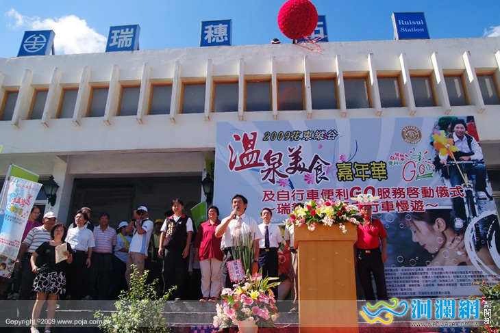 2009花東縱谷溫泉美食嘉年華活動,8日於瑞穗火車站前廣場展開,副縣長張志明、台鐵花蓮運務段副段長張建曆、