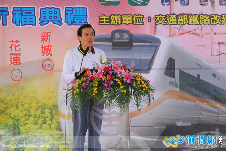 花東鐵路電氣化工程開工祈福典禮上午在玉里火車站舉行,馬總統致詞表示,