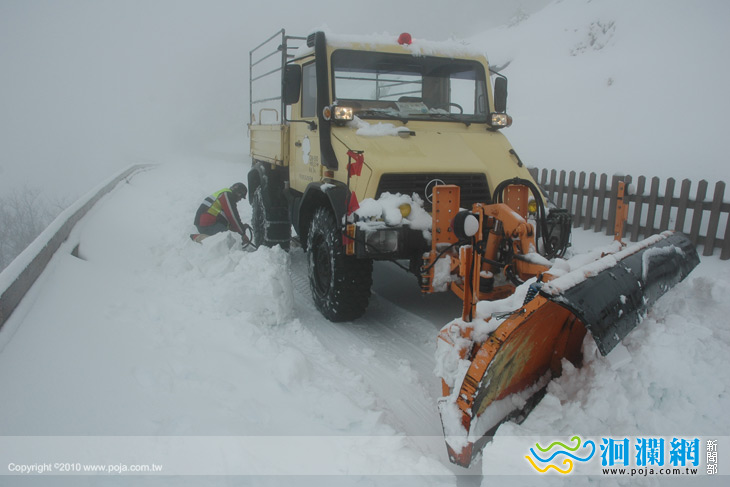 太管處鏟雪車不論清晨或黃昏則會即刻出動前往清理剛下的積雪,期盼能讓用路人及早通行。