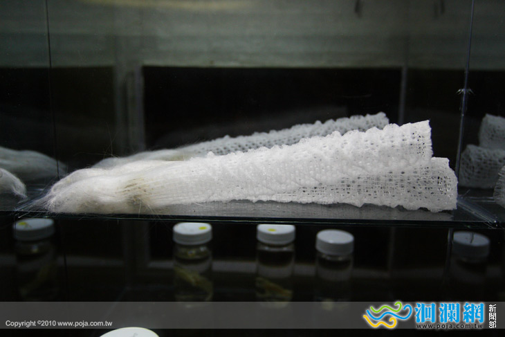 特展中最值得一看的就是通體透白的偕老洞穴-「六放海綿」,由矽質組成的骨針,