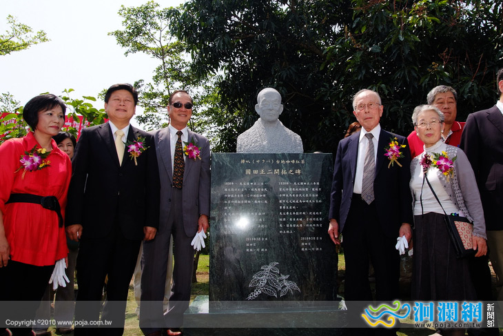 舞鶴咖啡之父~日人國田正二紀念石碑今由國田宏與花蓮縣長傅崐萁等共同揭碑