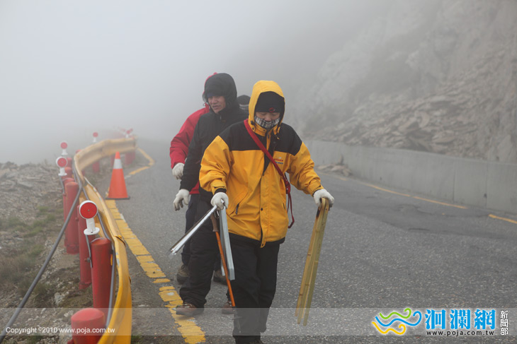 武嶺等地進行淨山活動,其中以公路下邊坡的垃圾最多,最不容易清理。因為合歡山區地形陡峭,