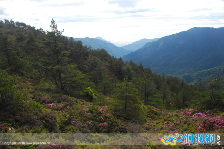 合歡北峰就可清楚觀察到台灣二葉松與紅毛杜鵑混生在一起的景象。