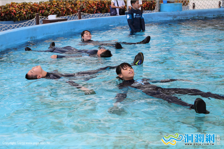 透過遠雄海洋公園特別安排的「海洋環保大作戰」, 10 位小朋友要穿著潛水衣游進深達 7 米 的水池,
