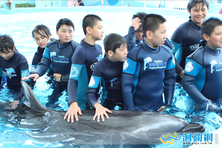 透過訓練師與獸醫團隊的解說,了解同樣是哺乳類卻生活在大海的「海豬」 - 海豚,與生活在山裡的學童們,