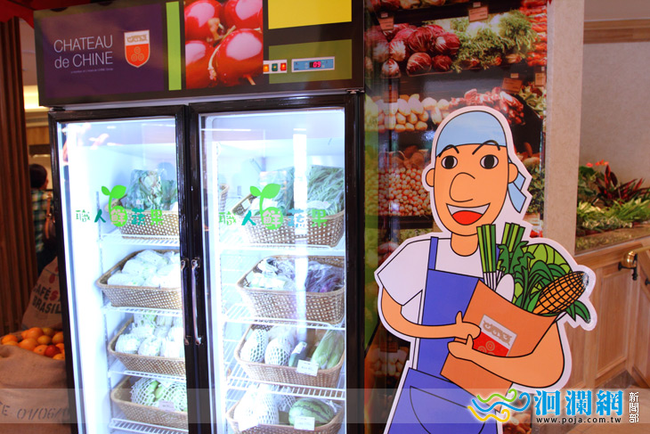在飯店大廳設置「生鮮蔬果區」,銷售花蓮無毒農業產品,方便遊客購買同時也幫農民行銷。