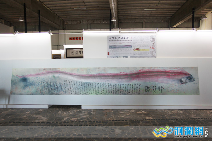 主辦單位表示:黃竹韻完成的『逍遙遊』魚拓主角是臺灣發現最長的勤氏皇帶魚(俗稱龍王魚、地震魚),