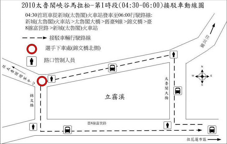 但起跑後最後一名選手通過太魯閣牌樓,管制點將從亞洲水泥廠移至太魯閣口錦文橋南側。