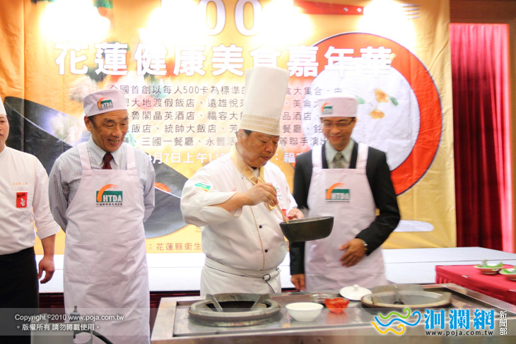 餐廳等 12 家業者的主廚大師,各自展現高超身手,在現場 聯手行銷花蓮健康美食。