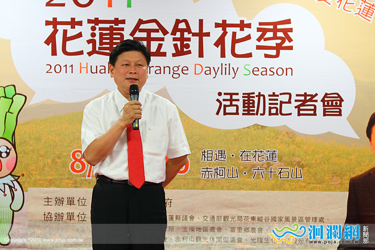花蓮縣政府5日於縣府大禮堂召開「2011花蓮金針花季-花蓮開鑼活動記者會」,傅崐萁縣長表示,