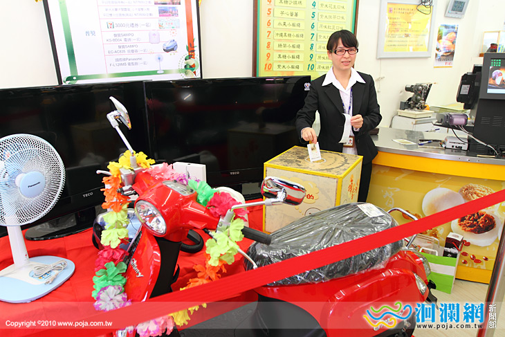 最大獎是價值六萬七千元的機車一輛,其他還有液晶電視、iPad2等豐富獎品,總價值超過15萬元。