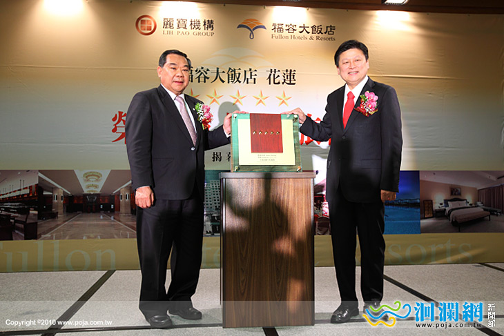 花蓮福容大飯店獲評為五星飯店,今天舉行揭牌典禮,由傅縣長與董事長吳寶田共同揭牌,現場嘉賓雲集,