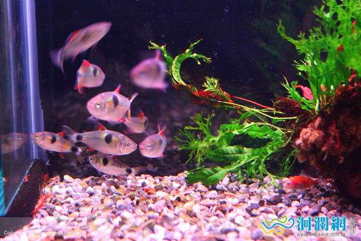 圖中右邊的小錦鯉很快的就會被馬克吐司魚吃光了鱗片.