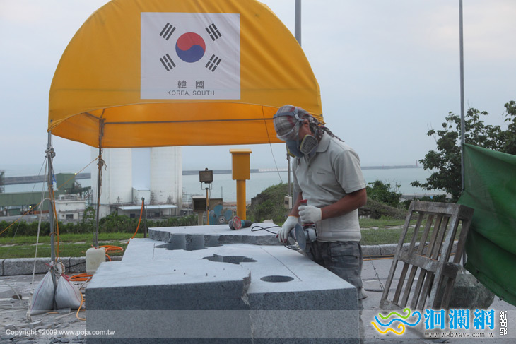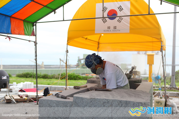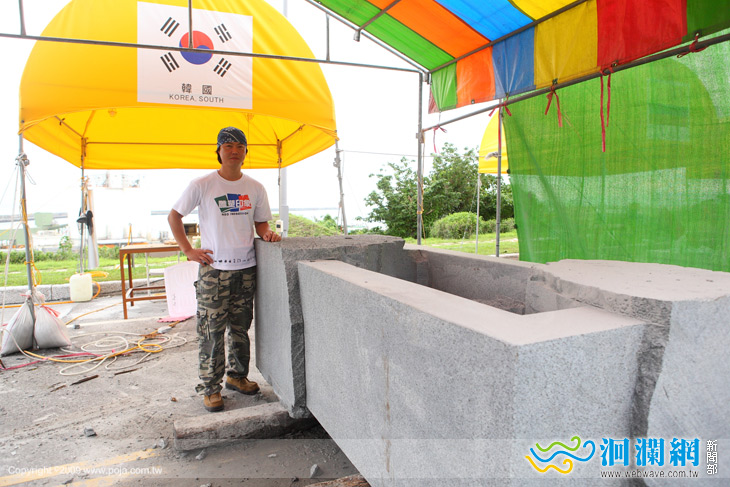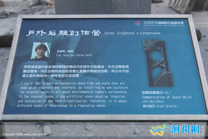 這一次他的戶外石雕作品,之所以選擇黑花崗石,他笑說在韓國黑花崗石比較便宜,其實最主要的