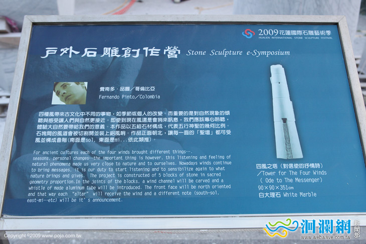 這一次他所創作的作品,四風之塔(對信使的抒情詩),是描述人與土地連結在一起,歡迎風的到