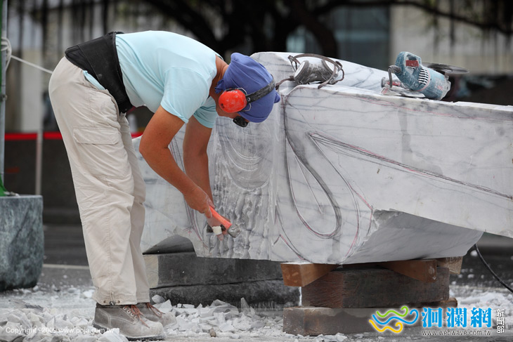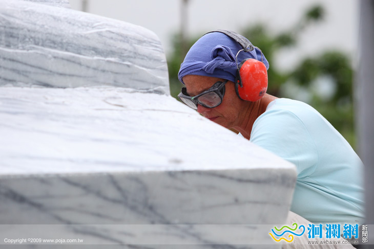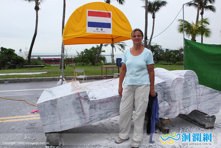 雖然這一次是卡倫.范.歐曼仁第二次來參加花蓮國際石雕的戶外創作營,但她一樣小心翼翼的看