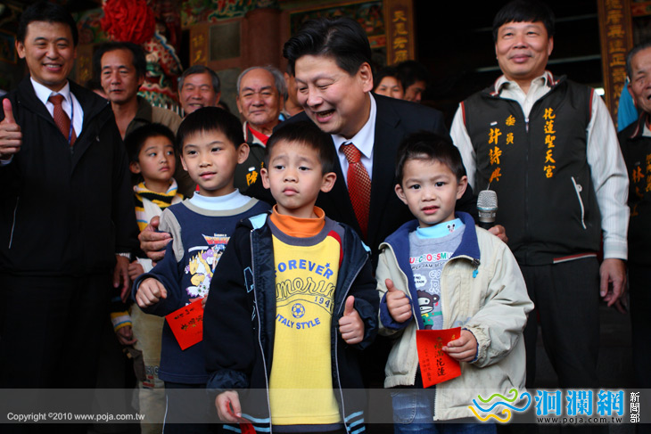 等人的陪同下,於上午10時首先抵達花蓮市帝君廟,領取「新春縣長紅包」的時間還沒到,