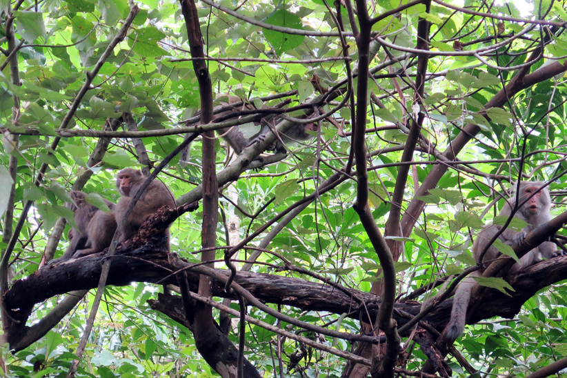 撒固爾步道是台灣獼猴的覓食區,沒想到在回程的路上就與獼猴家族相遇了