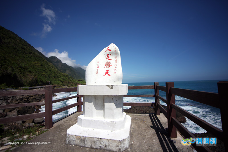 右側公路附近,有塊「人定勝天」的石碑,因為當初開路時,海岸岩石阻